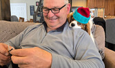 “I don’t knit in the summer, because my hands smell like manure all the time,” Larry says, who says he has already built up a callous from the knitting. Thank goodness, because he had injured his thumb in an airbrake several years back and he couldn’t find a thimble big enough to protect it, he laughs. At least for this winter, you’ll find Larry cozy on the couch with Diesel, just knitting away. ◊